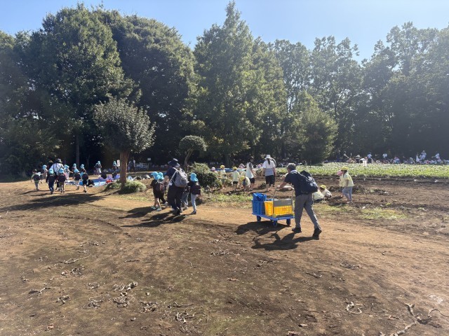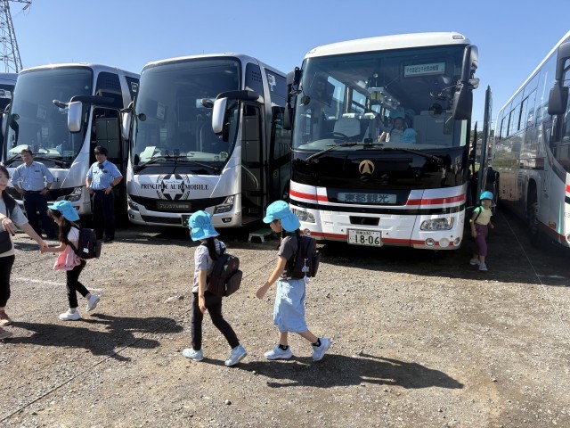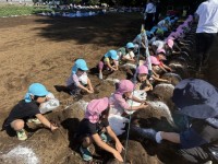 10月17日は、さくら組とすみれ組のいもほり遠足の日です。晴天に恵まれ、観光バスに乗って川越市にある荒幡農園に向かいます。