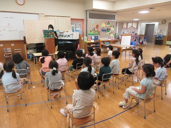今日は、いただきますの日でした。栄養士の櫻井先生から、紙芝居を通して『早寝・早起き・朝ごはん』の大切さを学びました。明日からの3連休も、生活リズムに気を付けながら楽しくお過ごしください。