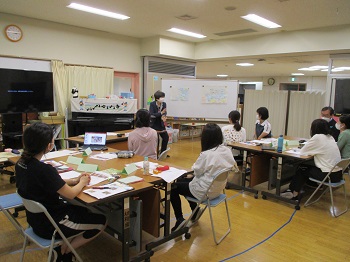 千代田区教育研究所の先生方に来園していただき、教職員の研修を行いました。本日の保育を動画で振り返ったり、子どもたちの様子を話し合ったりしました。明日からの保育に向けて、学びを深める研修となりました。