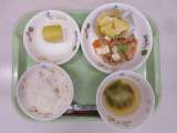 牛乳、ご飯、鶏肉の香味焼き、ひじきの炒り煮、すまし汁、りんご