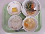 牛乳、ご飯、豆腐の肉野菜あんかけカレー風味、さつま芋の甘煮、みそ汁、バナナ