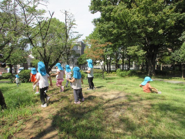 今日は3歳児ひよこ組の初めての遠足でした。朝からウキウキの子どもたち!バスの中ではクイズをしたり手遊びをしたりして楽しく過ごし、いざ生物園へ!一列で並んで歩くことも上手にできるようになり、成長を感じます。生物園では、モルモットに触れ合ったり、様々な生き物を見たりして、楽しく過ごしました。お気に入りは、水槽の下をくぐることができるトンネル。みんな大喜びでした。広場でお弁当を食べた後は、公園を散策。秋らしい爽やかな気候を肌で感じながら、戸外で気持ちよく過ごしました。