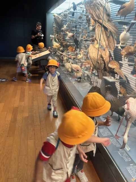 ◆国立科学博物館に到着すると、友達と手をつないで館内を見学します。大きな恐竜の化石や動物の剥製、昆虫の標本などを見て、ワクワクが止まりません!目を輝かせながら「大きい!」「ティラノサウルスかな」と思ったこと、感じたことをつぶやきます。床が透けていて、その下に動物の剥製が見える展示では、ドキドキしながらも下の剥製を見ています。