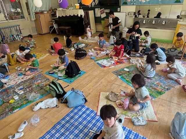 ◆こども園に帰ってきた後は、待ちに待ったお弁当の時間です。たくさん歩いてお腹がペコペコの子どもたちは、「おいしい!」と言いながらたくさん食べます。初めての遠足は、ワクワク・ドキドキの連続で、もも組全員で楽しい時間を過ごしました♪