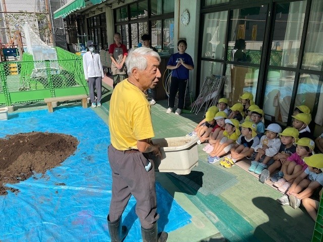 ♦土づくりの講師で地域協力者の山田邦彦(やまだくにひこ)さんにお越しいただき、栄養のある土の作り方や種のまき方などを教えていただきました。