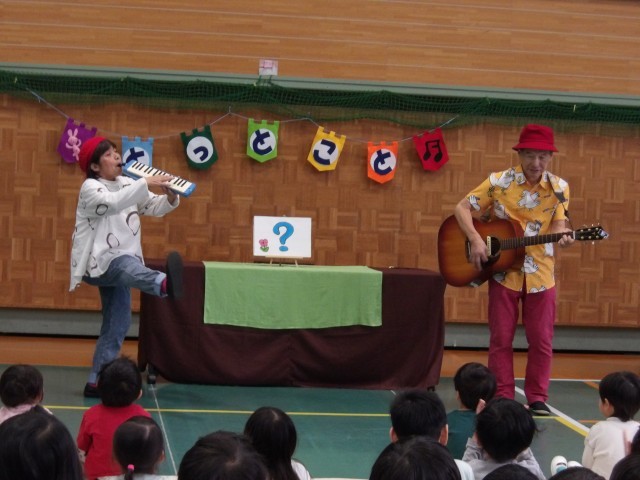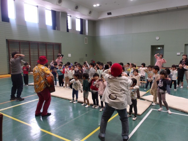 ◆観劇会第二部では、3歳児もも組、4歳児ばら組、5歳児ゆり組の子どもたちが、お話あそびやあそび歌がたくさん詰まったプログラムに夢中になって楽しんでいます。