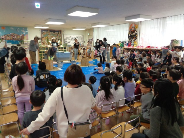 ◆いずみこども園のみんなで楽しい【もちつき会】を行っています。朝から玄関ホールには「なんかいいにおいがする!」とワクワクしている子どもの声が響いています。『亀屋大和』の古島様が、ついた餅であっという間に鏡餅を作ってくださり、会場からは子どもたちの歓声とたくさんの拍手が沸き起こりました。