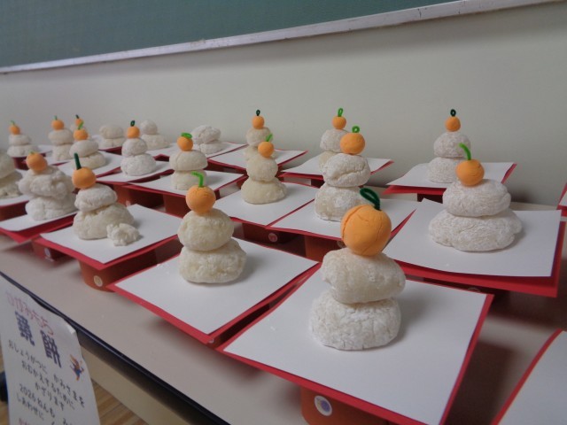 ◆ゆり組は自分たちでついた餅で、一人ひとり自分の鏡餅を作ります。どうしたらきれいにできるか、子どもたちも真剣な表情で取り組んでいます。丸める手つきもとても慎重で、「もう少し丸くしようかな」「ここを押さえたらいいのかな」と考えて工夫しながら作っています。この鏡餅とともに、きっと良い年を迎えられそうですね。